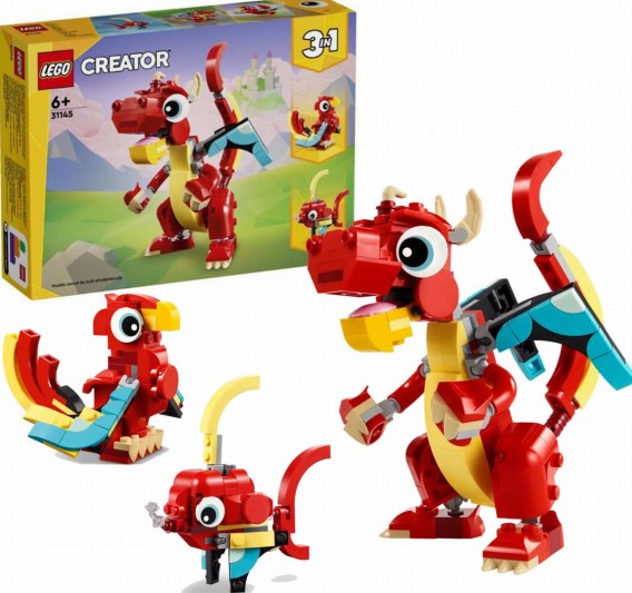 ✅Dzięki zestawowi konstrukcyjnemu 3 w 1 Czerwony smok (31145) kreatywne sześciolatki i starsze dzieci przeniosą się do magicznej krainy pełnej wspaniałych historii.