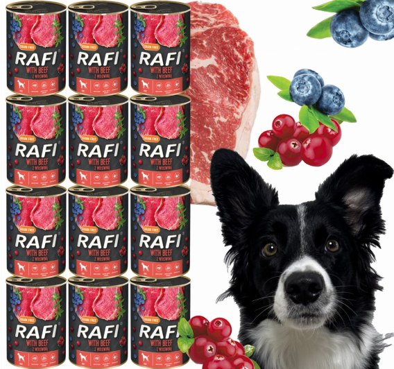 ⭐Karma Mokra Dla Psów RAFI z Wołowiną, Borówką i Żurawiną 400g - 12 szt.⭐