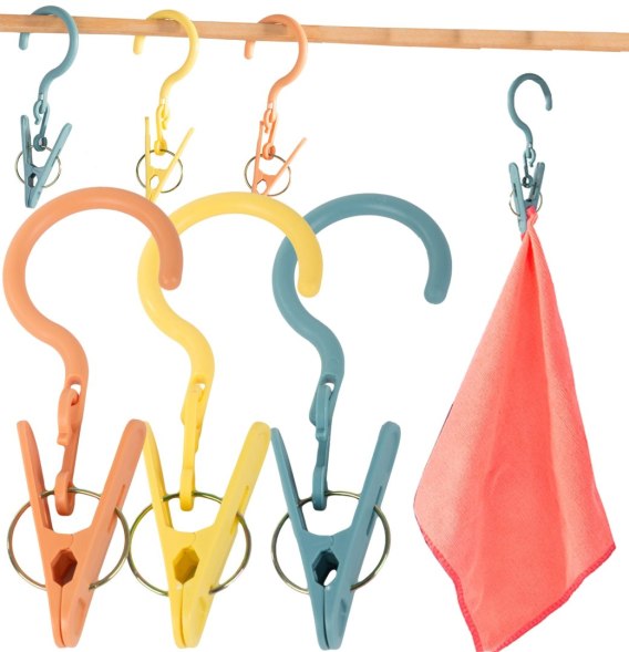 ✅ Dzięki specjalnemu haczykowi zawiesisz je tam, gdzie standardowa klamerka nie da rady - na pręcie, balustradzie, sznurze w ogrodzie czy gałęzi drzewa.
