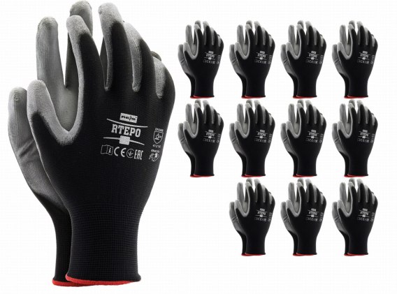 Rękawice robocze / czarno-szare / RTEPO_BS - 12 szt. (10 - XL)