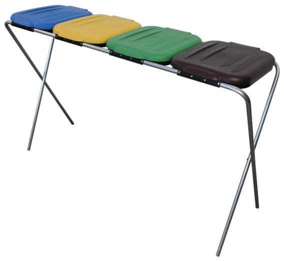 • Stojak do segregacji odpadów (4-stanowiskowy) niebieski, zielony, brązowy, żółty