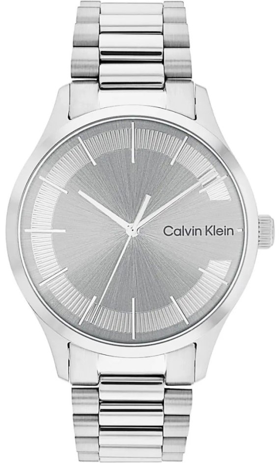Model CALVIN KLEIN Iconic Brancelet to kwintesencja męskiego stylu - minimalistyczny, ale z wyrazistym charakterem. Tarcza przyciąga uwagę unikalną fakturą ułożoną w kształt litery „C", co nie tylko nadaje jej nowoczesnego sznytu, ale i sprawia, że całość nabiera niepowtarzalnego stylu. Efekt promienistego szlifu, rozchodzący się z centralnego punktu, tworzy efekt świetlnego wachlarza, który nadaje głębi i energii, podkreślając dynamiczny charakter czasomierza. Chłodna, stalowa kolorystyka zegarka buduje spójną, elegancką kompozycję, idealną zarówno do garnituru, jak i casualowych stylizacji.