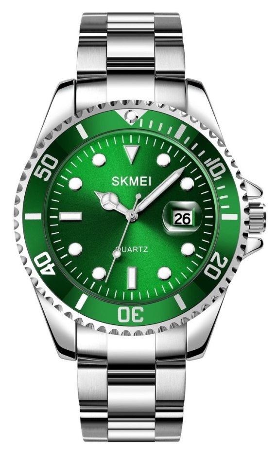 Od teraz luksusowy design możesz mieć na swoim nadgarstku. Model SKMEI 1779 swoim wyglądem nawiązuje do ekskluzywnych zegarków z serii Rolex Submariner "Hulk", które są ikoną w świecie zegarków nurkowych. Zielona tarcza i bezel w intensywnym odcieniu, charakterystyczne wypukłe szkło powiększające nad datownikiem oraz stalowa bransoleta to cechy bardzo zbliżone do legendarnego modelu Rolexa.