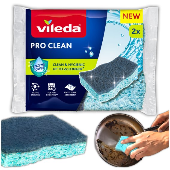 ✅ Naturalne enzymy w zmywaku wiskozowym Vileda Pro Clean skutecznie rozkładają zabrudzenia i resztki tłuszczu, dzięki czemu zmywak pozostaje higieniczny nawet przez 2 miesiące, nawet przy częstym użytkowaniu.